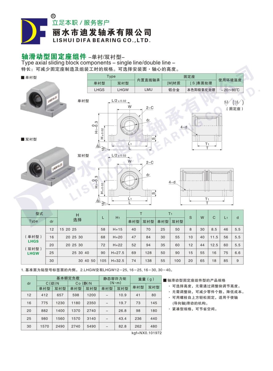 軸滑動型固定坐組件-單襯/雙襯型